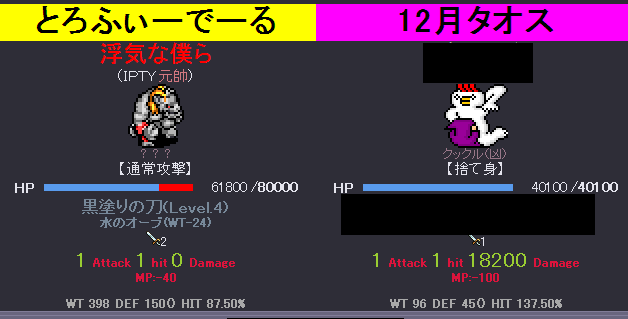 他鯖で防戦やら戦略やらしていたために 戦略が入ったのにも関わらずかなり放置してました。。。 埋まってるので、ひたすらDAして1回要塞に捨て身してオシマイ。 相手国が大きかったり人数少ない戦略の場合、 オフ狩り終了時にHP7万以上あるのにMPが1000切ってたりとかよくあります… 鯖が重いからどうしても良くDA→DA→DA→(ry となってしまいます。 自重しよう… 久々に建国しました。